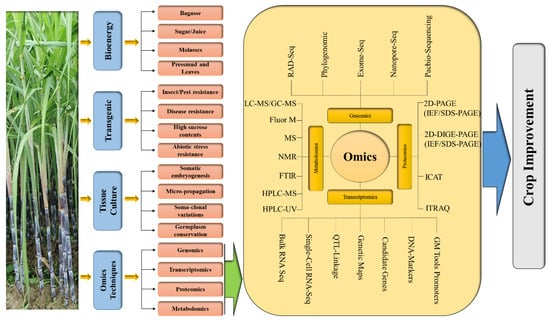 Ali, A.; Khan, M.; Sharif, R.; Mujtaba, M.; Gao, S.-J. Sugarcane Omics: An Update on the Current Status of Research and Crop Improvement. Plants 2019, 8, 344. https://doi.org/10.3390/plants8090344