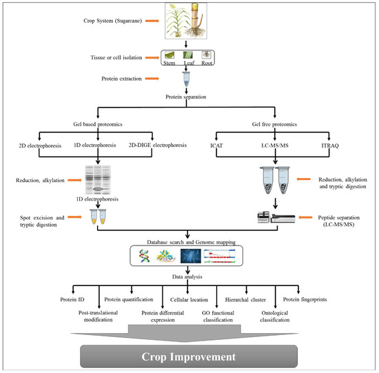 - Amalraj, R.S.; Selvaraj, N.; Veluswamy, G.K.; Ramanujan, R.P.; Muthurajan, R.; Palaniyandi, M.; Agrawal, G.K.; Rakwal, R.; Viswanathan, R. Sugarcane proteomics: Establishment of a protein extraction method for 2-DE in stalktissues and initiation of sugarcane proteome reference map. Electrophoresis 2010, 31, 1959–1974. [Google Scholar] [CrossRef] [PubMed]