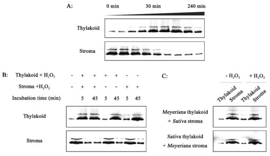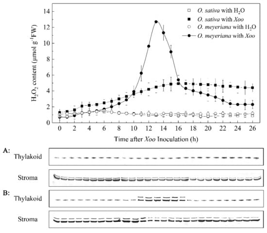 Chicago/Turabian StyleMei, Qiong, Yong Yang, Shenhai Ye, Weifang Liang, Xuming Wang, Jie Zhou, Chulang Yu, Chengqi Yan, and Jianping Chen. 2019. "H2O2 Induces Association of RCA with the Thylakoid Membrane to Enhance Resistance of Oryza meyeriana to Xanthomonas oryzae pv. oryzae" Plants 8, no. 9: 351. https://doi.org/10.3390/plants8090351