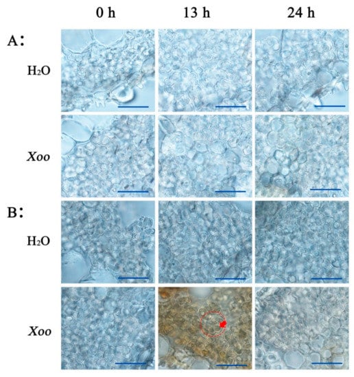 - Yang, Y.; Xie, L.; Yan, C.Q.; Wang, X.M.; Yu, C.L.; Cheng, X.Y.; Cheng, Y.; Chen, J.P. Xylem secondary cell-wall thickening involved in defense responses of Oryza meyeriana to Xanthomonas oryzae pv. oryzae. Acta Phytopathol. Sin. 2012, 5, 505–514. [Google Scholar]