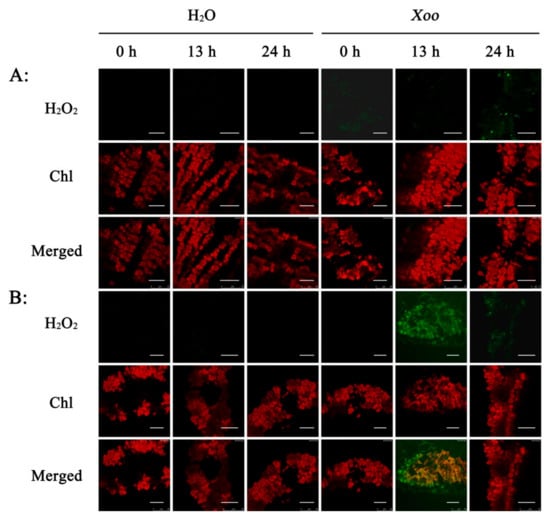 2.3. Effect of Xoo Inoculation on H2O2 Generation