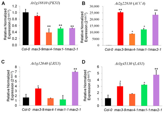 2.3. Strigolactone Metabolism-Related Genes Showed Differential Expression Pattern in the max Mutant