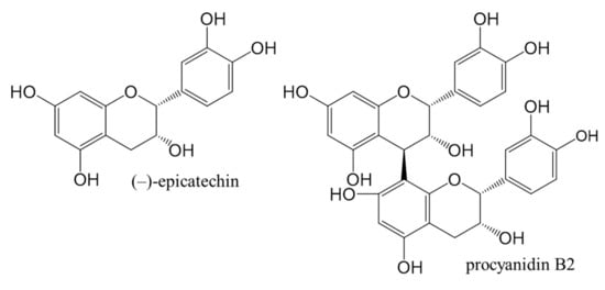 Chemical structures of (−)-epicatechin and procyanidin B2 standards used in this study.