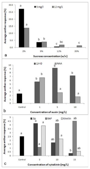 30]. The most commonly used auxin in anther cultures is 2,4-D, and the optimum concentration required is species-dependent [