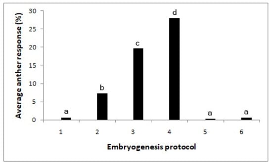 In many crops, the pretreatment of anthers has shown to be critical for inducing anther response by blocking gametophytic development and triggering pollen embryogenesis [