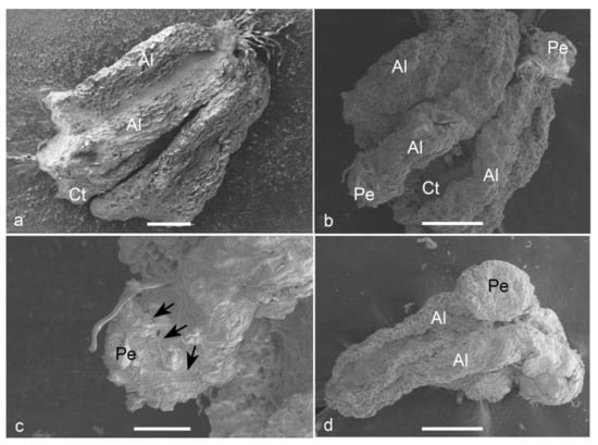 Ten anthers from each fresh and cultured anther at 2, 4 and 6 weeks of culturing were sampled for microscopic observation. Samples were fixed in FAA (50% ethanol + 10% formaldehyde + glacial acetic acid, 18:1:1) for 72 h and then dehydrated through a graded ethanol series (30, 50 and 70%, v/v) for 2 h by changing the solution at each hour. Samples were stored in 70% ethanol until use. Fixed samples were used for scanning electron and light microscopic analyses.