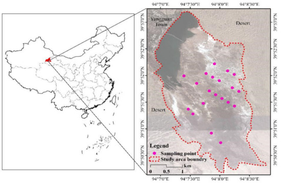 The Yangguan wetland (93.88–94.28° E, 39.65–40.08° N), belongs to Dunhuang Yangguan National Nature Reserve (DYNNR), and it is located in Yangguan Town, Dunhuang city, the westernmost point of the Gansu Province, China (Figure 3). The study area is an oasis extending westward in the Qilian Mountains but is mainly surrounded by desert, covering an area of 882 km2 and altitude ranging from 1150 to 1500 m. Its water source is from ice and snow melting water and precipitation in the mountainous area, and it is relatively stable [56]. The annual average temperature is 9.3 ℃, and the annual average precipitation is 36.9 mm, with means annual evaporation of 2465 mm. The main vegetation type in the area is temperate desert vegetation, with P. australis being the dominant species along with Leymus chinensis, Salicornia salsa, Lycium ruthenicum, Scorzonera austriaca and Glaux maritima and some associated species. The basic soil properties from May to October are presented in Table 5 (more details in Section 2).