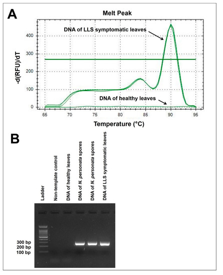 4.1.1. Preparation of LLS Symptomatic Peanut Leaves for Use in the Initial Development of qPCR Assay