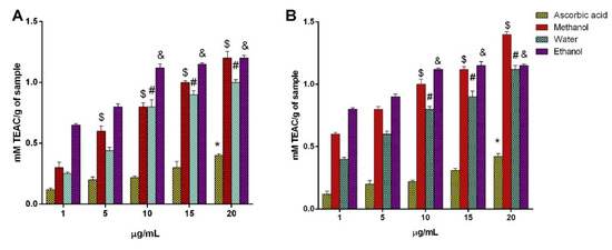 - Jagtap, U.B.; Panaskar, S.N.; Bapat, V.A. Evaluation of antioxidant capacity and phenol content in jackfruit (Artocarpus heterophyllus Lam.) fruit pulp. Plant Foods Hum. Nutr. 2010, 65, 99–104. [Google Scholar] [CrossRef] [PubMed]