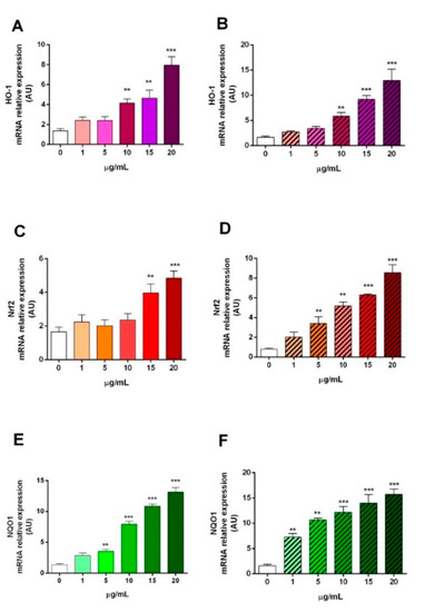 2.3.4. HO-1, Nrf2, and NQO1 Gene Expression