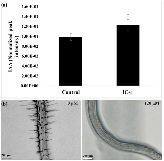 3.2. IAA Quantification and Morphological Malformations in Roots