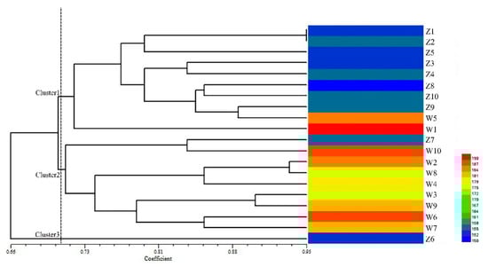 2.5. Genetic Diversity Analysis Using Candidate Gene-Based EST-SSR Markers