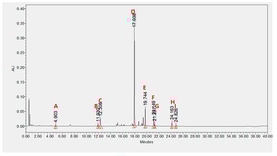 A Waters ACQUITY UPLC system equipped with a quaternary pump, auto-sampler, and photodiode array detector with an ACQUITY UPLC BEH C18 column (100 × 2.1-mm, 1.7-μm) was used for the chemical profiling of BS21 (Waters Corp., Milford, MA, USA). Elution was performed with 0.1% phosphoric acid solvent A and acetonitrile solvent B. The elution conditions involved holding the starting mobile phase at 94% A and 6% B for 12 min and applying a gradient (89% A: 11% B for 3 min, 80% A: 20% B for 20 min, 40% A: 60% B for 1 min). A wash with 100% B was applied for 2 min, followed by equilibration at 94% A and 6% B for 2 min. The separation temperature was maintained at 40 °C throughout the analysis, with a flow rate of 0.5 mL/min and an injection volume of 3 µL. Each component was analyzed by Quadrupole Dalton (QDa) mass spectrometry, after which the reference standards were purchased from Sigma-Aldrich (St. Louis, MO, USA) and ChemFaces Inc. (Wuhan, Hubei, China), respectively. The retention time and UV spectra were compared and quantified. Components were quantified based on peak areas at 270 nm.