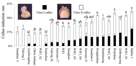 - Abe, T.; Futsuhara, Y. Genotypic variability for callus formation and plant regeneration in rice (Oryza satzva L.). Theor. Appl. Genet. 1986, 72, 3–10. [Google Scholar] [CrossRef]
