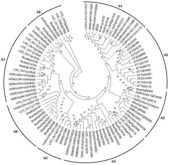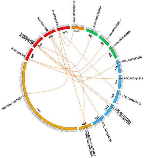 - The International Brachypodium Initiative. Genome sequencing and analysis of the model grass Brachypodium distachyon. Nature 2010, 463, 763–768. [Google Scholar] [CrossRef]