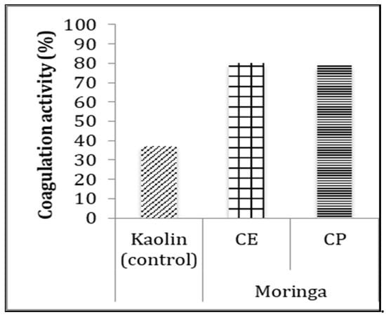 The coagulation activity of Moringa (MO) crude seed extracts and coagulant protein were measured using kaolin clay solution, and clay solution alone used as a control (Figure 5).