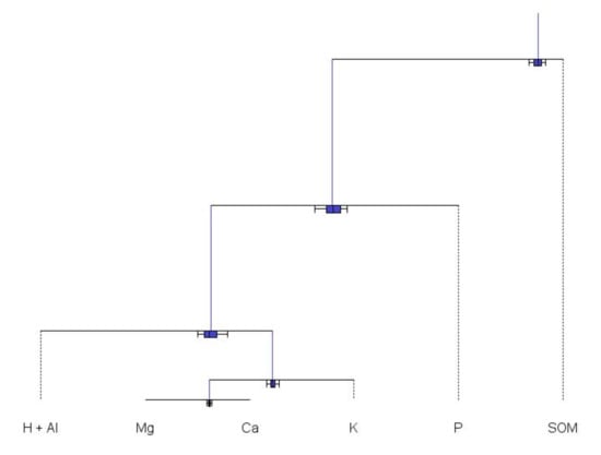 66]. The pH was measured in 1:2.5 soil-to-water volumetric ratio. P and K were extracted using the Mehlich-1 method. Ca, Mg and Al were extracted with 1 N KCl. Elements were quantified by inductively coupled plasma (ICP-OES). Exchangeable acidity (H + Al) was extracted using calcium acetate 0.5 M at pH 7.0. Cation exchange capacity was computed as the sum of exchangeable cations (K, Ca, Mg) and exchangeable acidity. Total carbon was determined by dichromate oxidation (Walkley–Black) and multiplied by 1.724 to obtain organic matter content [