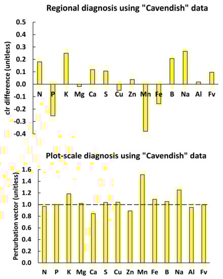 24] confer Euclidean geometries upon soil and tissue nutrient test results, making it possible to compare compositional entities rather than separately analyzed parts. Nutritionally imbalanced compositions can thus be compared with neighboring, successful, equal-length compositions at a local scale where other yield-impacting factors are similar [