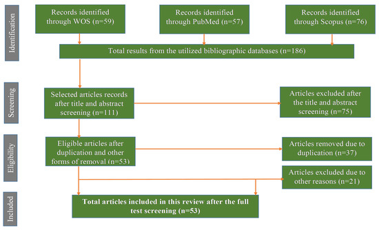 A total of 186 scientific publications were retrieved that focused on Mimusops zeyheri and related indigenous fruits. Finally, an estimated 33% (59) of the scientific publications were eligible and included in the current review (Figure 1).