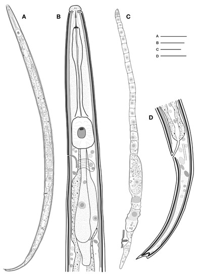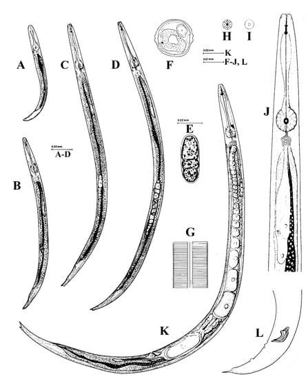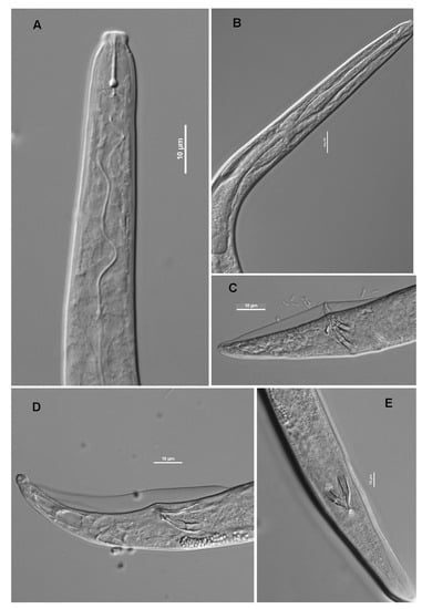- Golden, A.M. Preparation and mounting nematodes for microscopic observations. In B. Plant Nematology Laboratory Manual; Zuckerman, M., Mai, W.F., Krusberg, L.R., Amherst, M.A., Eds.; University of Massachusetts Agricultural Experiment Station: Amherst, MA, USA, 1990; pp. 197–205. [Google Scholar]