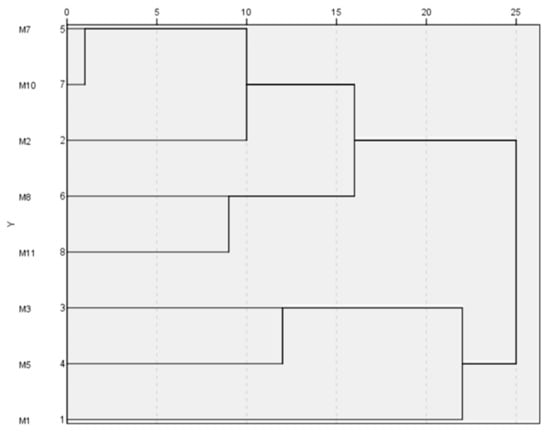 A hierarchical clustering analysis (HCA) using Ward method and the Euclidean square distance was performed, using the statistical software SPSS 24.0 (SPSS Inc., Chicago, IL, USA) to classify clusters according to samples similarity and dissimilarity.