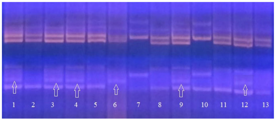 At the first stage, when we selected DNA markers for reliable interpretation of PCR products and identification of non-specifically amplified fragments, the following parameters were taken into account: the annealing temperature of specific pairs introduced into the reaction mixture, the difference in the size of PCR products synthesized during amplification with specific primer pairs (at least 100 base pairs), and the self-complementarity of the primer sequences.