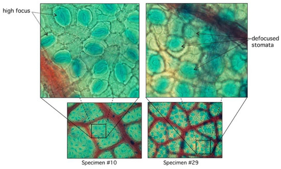 Comparison between high and low focused stomata. In specimen #10, stomata are clearly visible with sharp edges with very low RMSD (see Figure 7). Specimen #29 has diffused edges.