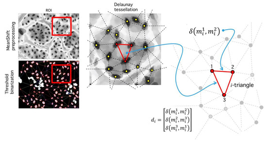 Step V. Delaunay tessellation: This phase consists in the generation of a triangular tessellation for all regions defined as segmented inliers. Mass centers for each -th region are determined through central moment estimation [50].