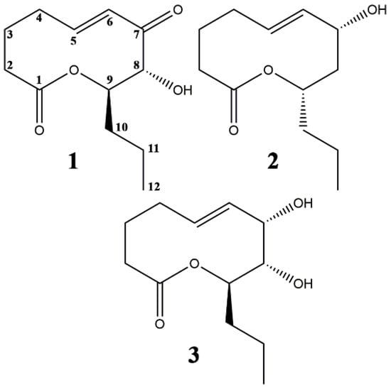 Nonenolide-type phytotoxins from S. cirsii S-47. 1—stagonolide A, 2—stagonolide K, 3—herbarumin I.