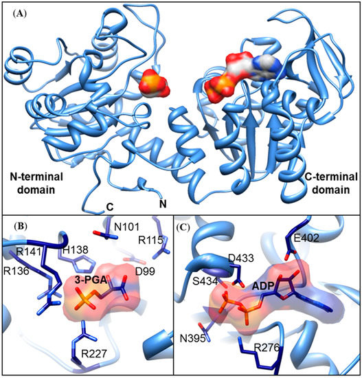 3.3. In Silico Structural ZmPGK Models and Possible Interactions with Their Substrates