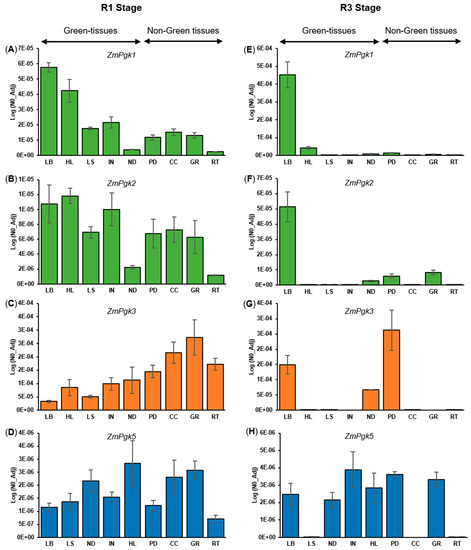 3.4. Differential Expression of ZmPgk Genes