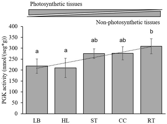 - Rosa-Tellez, S.; Anoman, A.D.; Flores-Tornero, M.; Toujani, W.; Alseek, S.; Fernie, A.R.; Nebauer, S.G.; Munoz-Bertomeu, J.; Segura, J.; Ros, R. Phosphoglycerate Kinases Are Co-Regulated to Adjust Metabolism and to Optimize Growth. Plant Physiol. 2018, 176, 1182–1198. [Google Scholar] [CrossRef]