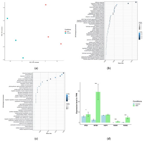 2.2. Detection of Differentially Expressed Genes in Response to AM Fungi Inoculation