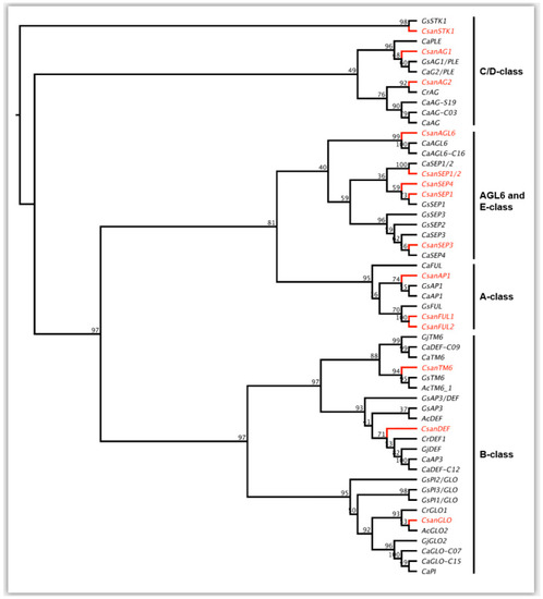 2.4. Phylogenetic Analyses of Ceropegia sandersonii MADS-box Genes
