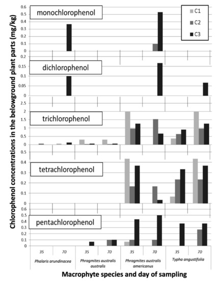 - Zhao, L.; Zhu, C.; Gao, C.; Jiang, J.; Yang, J.; Yang, S. Phytoremediation of pentachlorophenol-contaminated sediments by aquatic macrophytes. Environ. Earth Sci. 2011, 64, 581. [Google Scholar] [CrossRef]