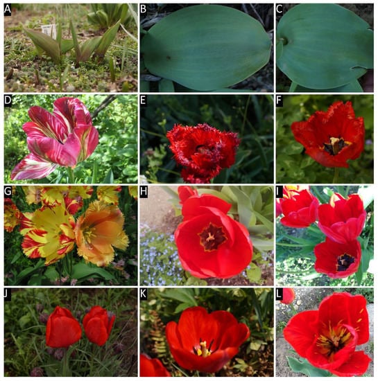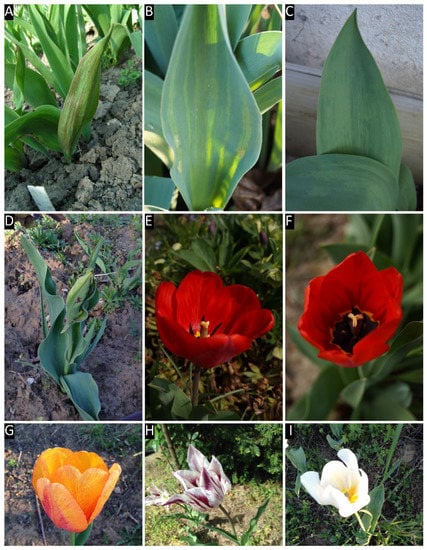 - De Hertogh, A.A.; le Nard, M. Tulipa. In The Physiology of Flower Bulbs: A Comprehensive Treatise on the Physiology and Utilization of Ornamental Flowering Bulbous and Tuberous Plants; de Hertogh, A.A., le Nard, M., Eds.; Elsevier: Amsterdam, The Netherlands, 1993; pp. 617–682. ISBN 978-0-444-87498-6. [Google Scholar]
