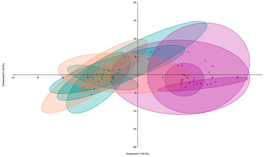 - Livak, K.J.; Schmittgen, T.D. Analysis of relative gene expression data using real-time quantitative PCR and the 2^-ΔΔCT method. Methods 2001, 25, 402–408. [Google Scholar] [CrossRef]
