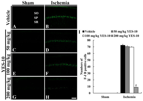 2.3. Fluoro-Jade B (F-J B) Positive Cells