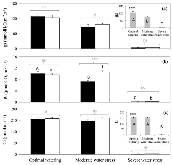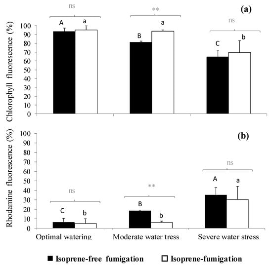 2.2. Variation of Physiological Traits According to Watering and Fumigation Treatments