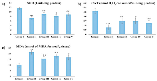 The extracted liver was cleaned and homogenized in chilled buffered saline, the aliquot so obtained was used for the estimation of CAT [58], SOD [59], and MDA [60].