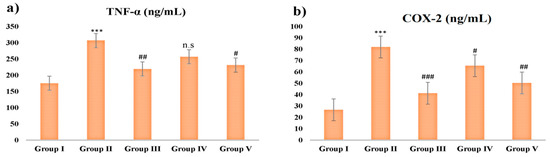 Inflammatory mediators TNF-α and COX-2 were evaluated in serum by a commercial diagnostic kit.