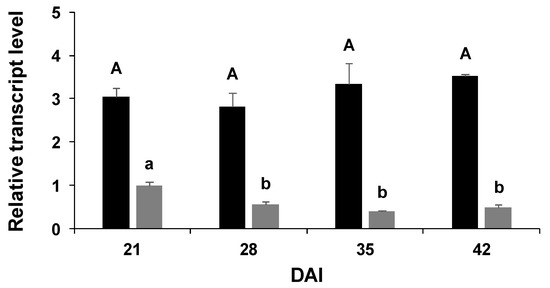 - Livak, K.J.; Schmittgen, T.D. Analysis of relative gene expression data using real-time quantitative PCR and the 2(-Delta Delta C(T)) method. Methods 2001, 25, 402–408. [Google Scholar] [CrossRef] [PubMed]