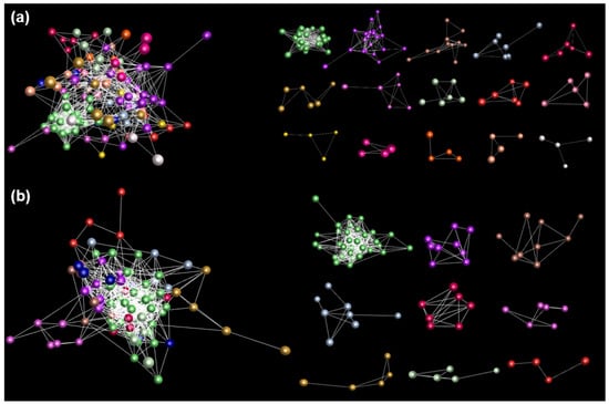 - Theocharidis, A.; Van, D.S.; Enright, A.J.; Freeman, T.C. Network visualization and analysis of gene expression data using BioLayout Express (3D). Nat. Protoc. 2009, 4, 1535. [Google Scholar] [CrossRef]