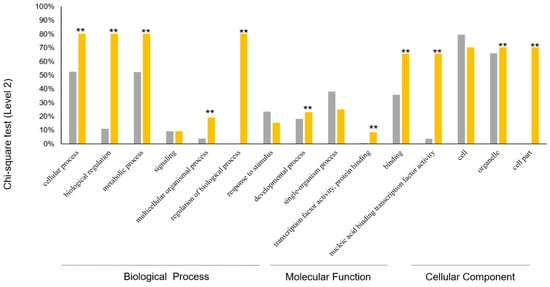 2.3. Gene Expression Pattern, GO Function Classification and Enrichment Analysis