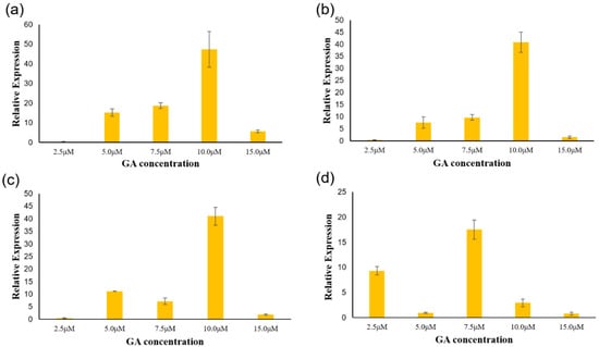 3.5. Analysis of PgGRAS Genes Expression under Different Concentrations of GA