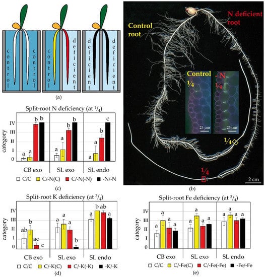 3.1. Nutrient Deficiency Affects Differentiation of Apoplastic Barriers in a Nutrient-Specific Manner
