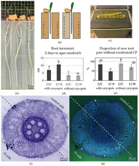 - Armand, T.; Cullen, M.; Boiziot, F.; Li, L.; Fricke, W. Cortex cell hydraulic conductivity, endodermal apoplastic barriers and root hydraulics change in barley (Hordeum vulgare L.) in response to a low supply of N and P. Ann. Bot. 2019, 124, 1091–1107. [Google Scholar] [CrossRef]