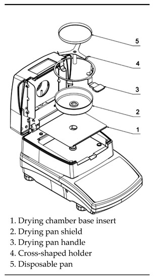 MA.R infrared dryer and moisture analyzer (Radwag balances and scales, Warsaw, POLAND) was used as drying equipment (Figure 1). The drying temperatures were 50, 60, 70 °C in each experiment. The amount of evaporated water was determined during drying at about 2-min intervals at each drying temperature. Tests were replicated three times, and the average weight loss was reported.