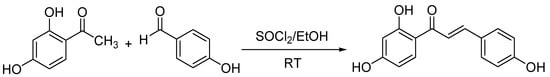 - Hou, Y.X.; Sun, S.W.; Liu, Y.; Li, Y.; Liu, X.H.; Wang, W.; Zhang, S.; Wang, W. An improved method for the synthesis of butein using SOCl2/EtOH as catalyst and deciphering its inhibition mechanism on xanthine oxidase. Molecules 2019, 24, 1948. [Google Scholar] [CrossRef]