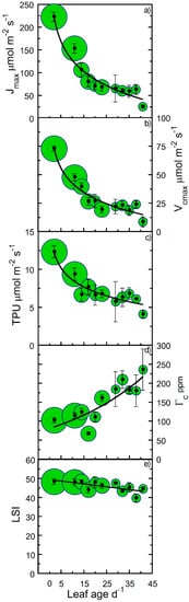 - Bielczynski, L.W.; Lacki, M.K.; Hoefnagels, I.; Gambin, A.; Crocea, R. Leaf and plant age affects photosynthetic performance and photoprotective capacity. Plant Physiol. 2017, 175, 1634–1648. [Google Scholar] [CrossRef]